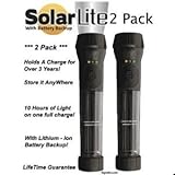 82 of 82 people found the following review helpful This review is from: HYBRID SOLAR POWERED FLASHLIGHT WITH EMERGENCY BATTERY BACKUP BLACK (*2-pack*) I bought a pack of these a couple of months ago, and they really work. Like the review ahead of me, they do what they say. Main good points: Very solid build, does not require direct sunlight to charge, easily changed backup coin cells, runs a long time on a full charge, nice usable amount of light. Cons: the on-off switch isn't labled, so if you don't use it regularly it is not clear if you are running off the solar cell or running down your backup coin cells. Takes a long time to fully charge the solar cell if the battery is completely run down (2 days direct sunlight, 1 week if set in a window that gets daylight but no direct sun). These are really useful lights.UPDATE 10/21/10. I've now had them about 1 1/2 years and still going strong. Well made. 40 of 40 people found the following review helpful By Amazon Verified Purchase This review is from: HYBRID SOLAR POWERED FLASHLIGHT WITH EMERGENCY BATTERY BACKUP BLACK (*2-pack*) I am a real fan of the Nightstar flashlights, but felt I had to check out the Solarlite. I had the Solarlite for a month now and feel it delivers what it promises. It floats, works under water, and just as tuff as my Nightstar. I have used it well over 6 hours on one solar charge. It is interesting to see that it does not need to be in direct sun light to start charging. I can see this as a general work light, where you leave it on the dash of your work truck to keep it full charged up. The backup batteries are 2 CR2032 3v button cells that are replaceable. It's brighter and smaller then my Nightstar. I can only see one advantage the Nightstar has over the Solarlite, and that is the on and off switch. The Nightstar switch glows in the dark to help find the flashlight. The Solarlite has a clicking system, where you have to click pass the battery backup mode to turn off the flashlight. This would drain a second of battery backup power each time you go to turn off the... Read more 29 of 30 people found the following review helpful By This review is from: HYBRID SOLAR POWERED FLASHLIGHT WITH EMERGENCY BATTERY BACKUP BLACK (*2-pack*) I was a little skeptical at first but I went ahead and ordered 4 of these (2x2-pack) to have around the house as my emergency flashlights. I was quite pleased when I got them and they seem to be made very well. I did not find the click through confusing at all (1st click = solar (yellow led), 2nd click = battery (green led), 3rd click = off/standby (red LED means it's charging)). There are also small symbols under each LED which are pretty self explanatory as to what mode you are in. I also didn't really realize they were water proof when I got them so that was a nice little bonus. The only reason I didn't give it 5 stars was that I like a flashlight to have some weight to it (like a Maglite). I'm not saying I want to hit somebody over the head with it a more solid feel would make this perfect. Nevertheless, for the price it's a great solar flashlight and I recommend it. |
